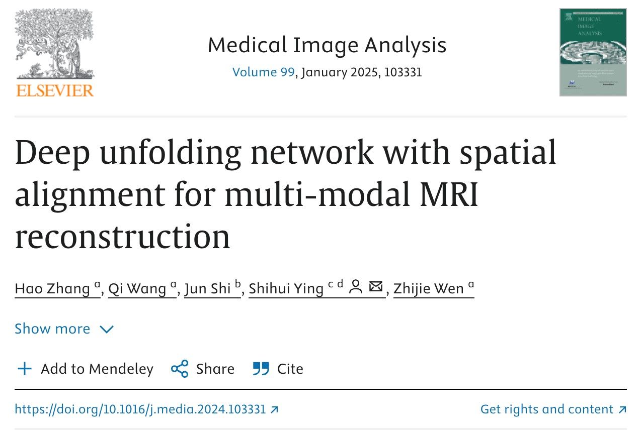 近日,永利集团88304官网硕士研究生张浩在导师应时辉教授和温智婕副教授的指导下,以第一作者在医学影像人工智能领域顶级期刊《Medical Image Analysis》(中科院一区TOP,影响因子10.7)在线发表了多模态MRI重建方面的最新工作“Deep unfolding network with spatial alignment for multi-modal MRI reconstruction”。
