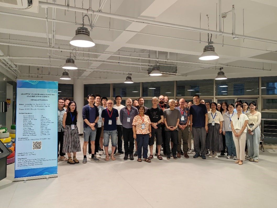 2024年9月18日-30日,永利集团88304官网数学系成功举办椭圆离散可积系统及其相关问题高级研讨班(Elliptic Integrable Systems and Related Topics: Advanced Seminars)。此次研讨班由数学系张大军教授、张成副教授、Leeds大学Frank Nijhoff教授和华东师范大学傅蔚副教授共同组织,Frank Nijhoff教授和张大军教授担任联合主席。研讨班聚焦于椭圆离散可积系统以及椭圆函数解和相关内容,特别是离散的Krichever-Novikov方程等椭圆可积系统、椭圆孤子解的代数结构、离散Painlevé方程代数几何结构与渐近性、椭圆正交多项式与可积系统、超离散可积系统、KP方程的线孤子结构与椭圆曲线、可积映射等主题。本次研讨会共有37场高水平的主题报告,报告专家来自美国、澳大利亚、日本和英国的12位国际著名学者,如国际数学联盟执委、澳大利亚科学院院士Nalini Joshi等。本次研讨班吸引了来自英国帝国理工学院、中国科学院大学、中国科学技术大学、复旦大学、北京师范大学、华东师范大学、东华大学等院校的40余名青年学者和研究生参加。此次高级研讨班得到了与会专家学者的高度评价,推动了椭圆曲线在可积系统理论中的应用。
