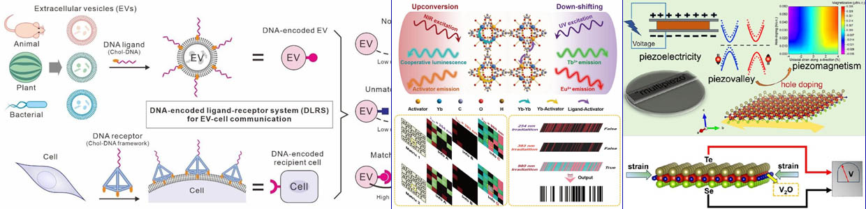 受二维材料层状结构的启发,该团队创新地采用超声剥离技术,将不同稀土组分MOFs层层堆叠构建多层二维MOFs复合材料。首次在不同组分间通过界面能量转移效应成功实现了上转换发光,为调控二维MOFs的发光性能开辟了新途径。基于材料独特的上转换/下转移发射特性,该团队还探索了该类材料在多级信息存储中的应用,二维发光MOFs能够在不同激发条件产生差异化的光学信号,用于构建多级信息存储系统,显著提高数据存储的密度和安全性,为稀土MOFs多功能材料的开发提供了新的思路。