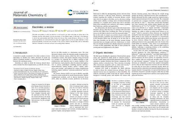 近日,永利集团88304官网量子与分子结构国际中心(ICQMS) Lee Burton博士和任伟教授团队在国际著名学术期刊《Journal of Material Chemistry C》(IF= 6.641)上发表题为“Electrides: a review”的综述文章。物理系博士研究生刘畅同学为该论文第一作者,永利集团88304官网物理系为论文第一单位。东京工业大学Sergey Nikolaev博士合作参与了论文研究工作。