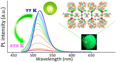 近日,物理系量子与分子结构国际中心 (ICQMS) 李永乐副教授课题组与南京大学物永利集团88304官网蔡宏灵教授合作,发现了具有高度热稳定性、在紫外线激发发射绿色荧光,有望作为新一代 LED 材料的无机-有机杂化钙钛矿型晶体 MEA(MnBr(4-x)Clx)2 (MEA=((CH3)4N)((C2H5)4N)2•NH4, x = 0, 2, 3),研究成果以“New photoluminescence hybrid perovskites with ultrahigh photoluminescence quantum yield and ultrahigh thermostability temperature up to 600 K”为题发表于国际著名一区期刊 Nano Energy (IF = 16.6) 上。