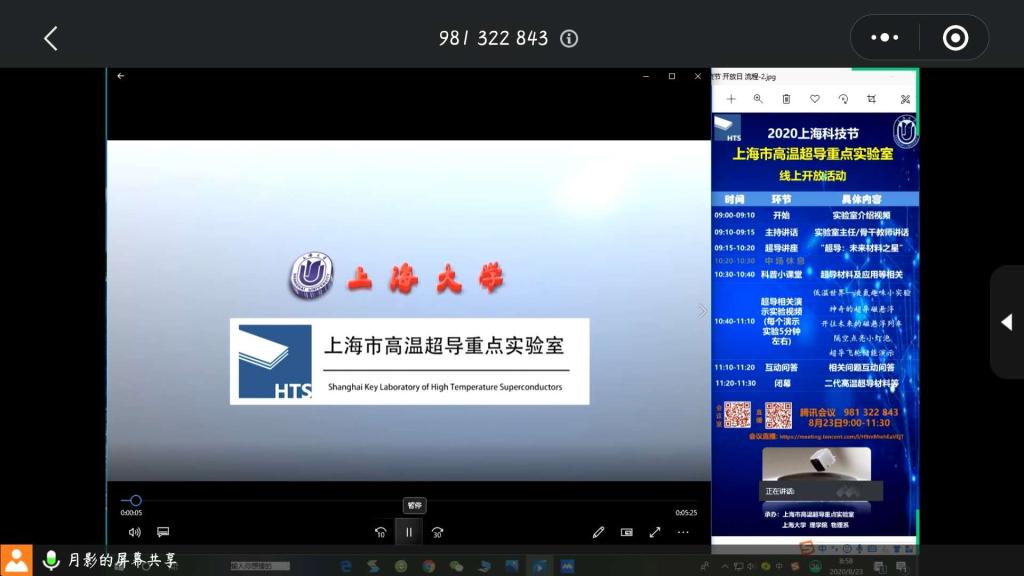 8月23日,永利集团88304官网上海市高温超导重点实验室举办了2020年上海科技节开放日活动,此次活动通过腾讯会议及同步直播形式在线上进行,面向广大社会公众开展了一系列科普讲座、报告及科普视频演示,线上参与观看互动人数过百。