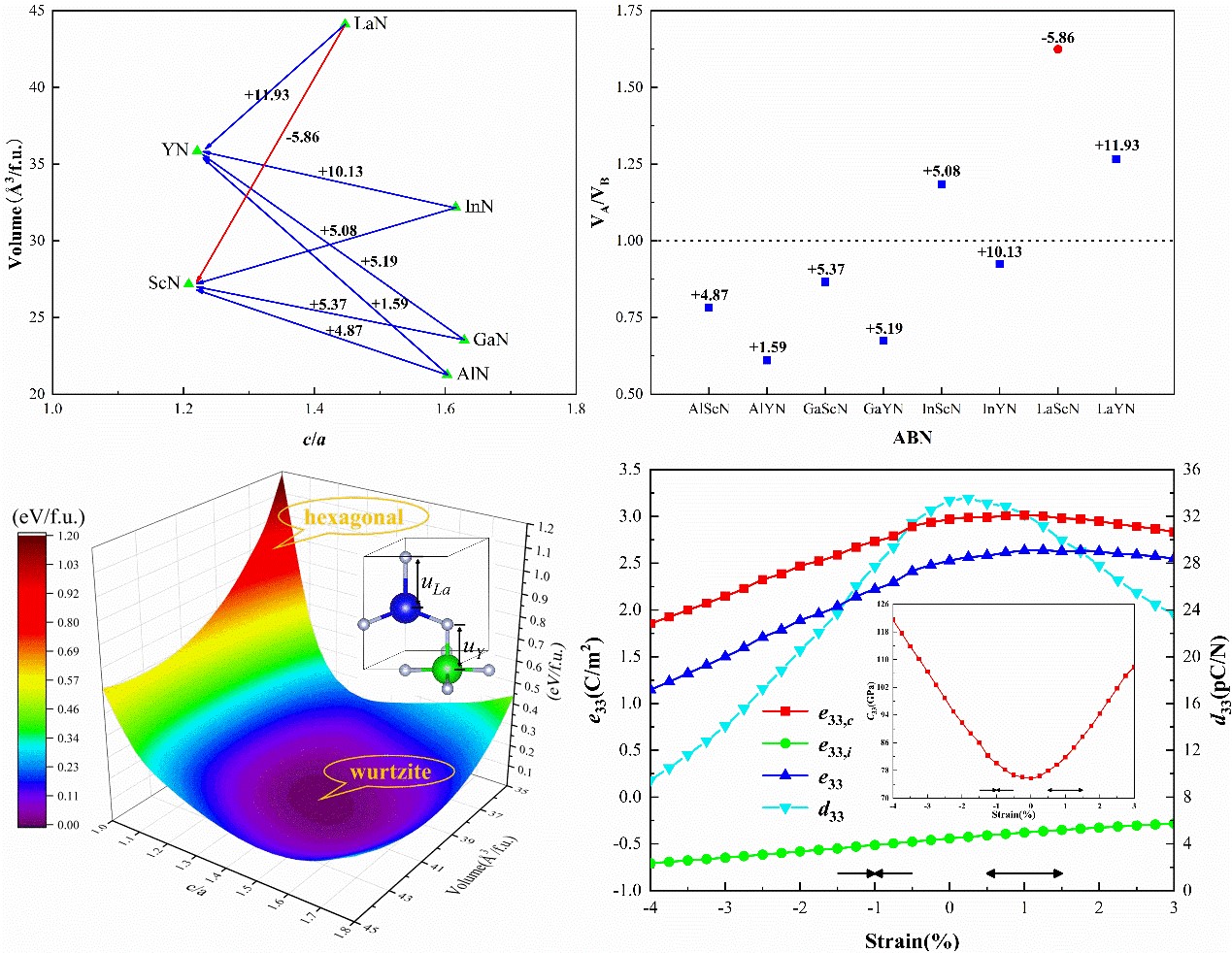 此工作验证了体积匹配机制同样适用于识别超晶格型的压电材料,并预测其可能可以应用于非氮化物。(ACS Applied Materials & Interfaces)