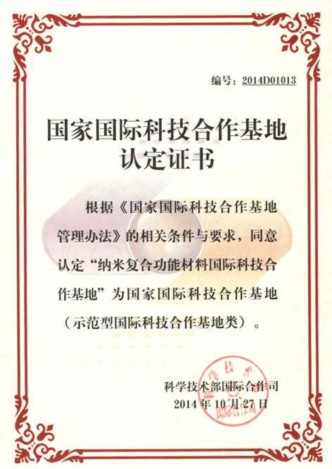 日前,国家科技部国际合作司对2006年以来已认定且持续开展国际科技合作的719家国合基地开展了系统性、全覆盖的综合评估,包括形式审查、专家网络函评、会议评估等环节,经过专家组的综合评定,由永利集团88304官网作为依托单位、永利集团88304官网施利毅教授负责的国家国际科技合作基地—“纳米复合功能材料示范型国际科技合作基地”,评估结果为良好。