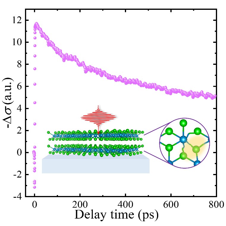 本研究以超快THz光谱技术为手段,系统探究了II类Dirac半金属PtTe2中的光激发超快载流子动力学,在亚皮秒时间尺度内观测到了反常且十分有趣的负THz光电导响应。考虑到PtTe2具有很强的电子-声子耦合,结合激发功率、样品温度、样品厚度依赖的瞬态THz光谱以及THz光电导率色散证明了这种反常的负光电导源于一种准粒子——小极化子(small polaron)的形成。光激发后由于很强的电子-光学声子耦合引起光载流子附近的晶格畸变,载流子产生自捕获效应,导致系统的迁移率降低,从而导致负的光电导现象。该工作对追踪并操控电声耦合以及电子的能量弛豫具有重要意义,对基于PtTe2的超快光电子器件的开发与设计提供了重要的平台与借鉴。