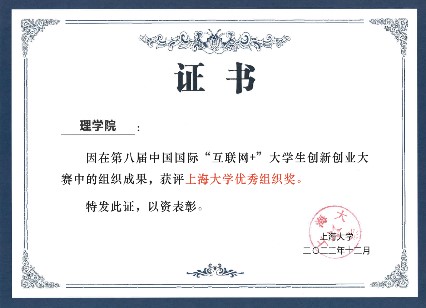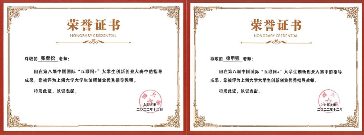 中国国际“互联网+”大学生创新创业大赛创办于2015年,目前已成功举办八届,是全世界规模最大、最具影响力的高水平大赛,具有参赛对象多样、赛道丰富、项目类型多种的三大特点,为高校提供了展现各自学科领域创新成果的机会,是学校体现学科专业水平、人才培养成效的重要舞台。永利集团88304官网在第八届国赛中取得1金6铜共七项奖项。永利集团88304官网因在第八届大赛中的积极组织和优秀表现,荣获“永利集团88304官网优秀组织奖”; “呼吸之检”指导教师张登松教授和徐甲强教授分别获得“永利集团88304官网大学生创新创业优秀指导教师”荣誉称号。