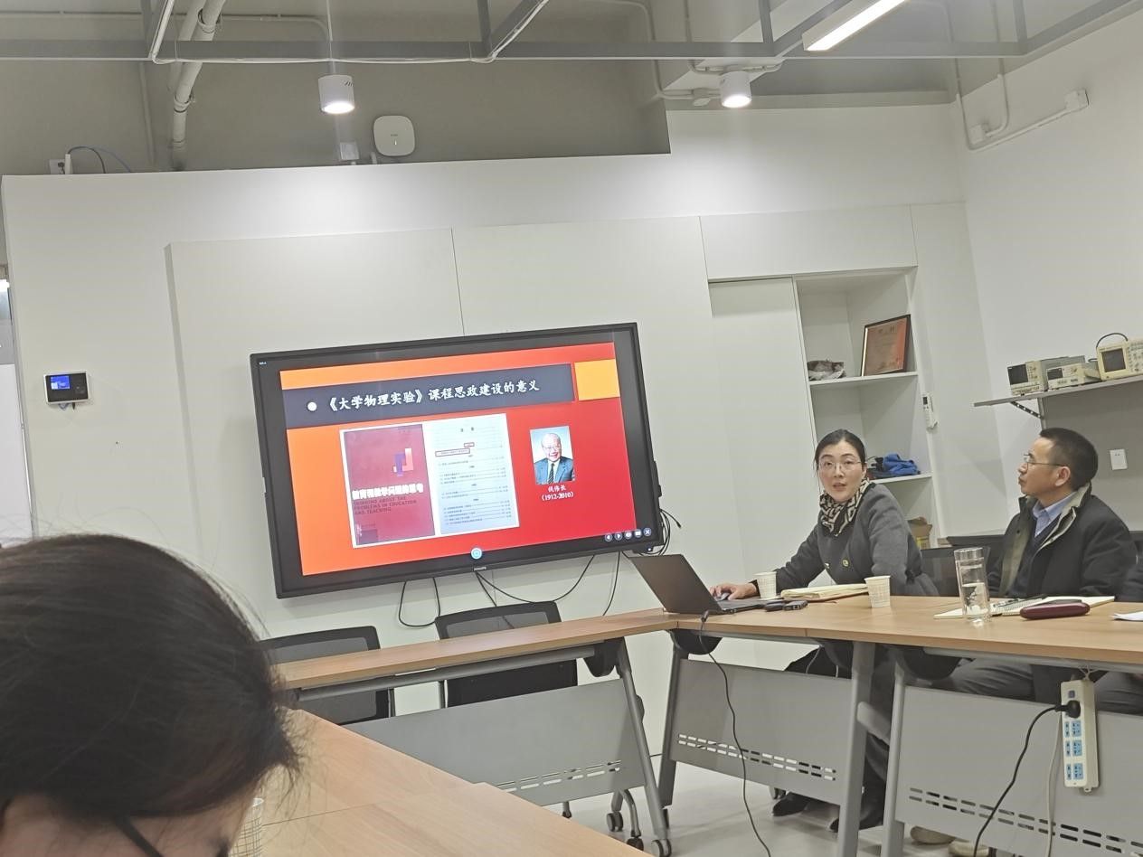 会上,戴晔副院长首先发言,提到了要充分利用实验课中理论与实践相结合的特色,在理论知识讲授时融入思政元素,在实验操作时注重“实事求是是科学精神”这一课程思政内涵。随后欧忠敏老师作了“《大学物理实验》课程思政示范课程建设情况”的报告,并对后续做好示范课程建设工作进行了布置。接着安康老师作了“《大学基础物理实验》教材建设情况”的报告,对教材的进一步优化和完善进行了安排。紧接着张义邴老师介绍并解读了《“十四五”普通高等教育本科国家级规划教材建设实施方案》,对永利集团官网大学物理实验教材编写情况和特色进行了梳理,介绍了最新的教材融入实验发展历史背景、科学家故事等思政元素,增加了实验课程AR小视频等内容。讨论环节上,大家畅所欲言,在如何将思政元素润物细无声地融入实验课程方面提出了许多宝贵的意见和建议。最后物理系主任、中心主任葛先辉发表总结讲话,指出本次大学物理实验课程思政教学研讨会深入探索了思政元素与大学物理实验课课程有机融合,号召物理实验中心的所有老师团结一致,将思政元素更好的在物理实验课中发挥作用,为国家培养优秀的社会主义接班人。