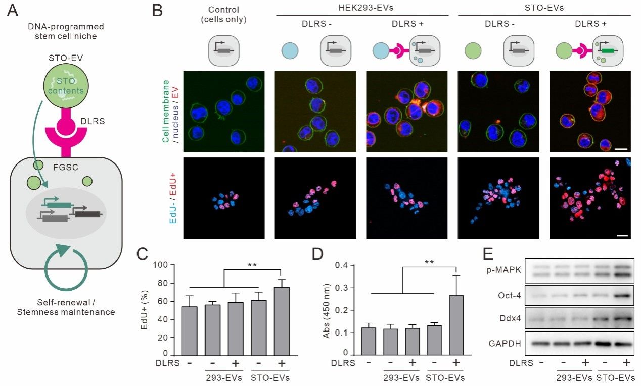 图2. DNA编程细胞外囊泡与干细胞相互作用,构建雌性生殖干细胞龛