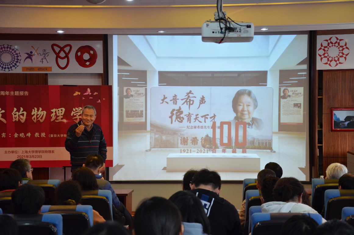 为深切缅怀我国著名物理学家谢希德先生为教育科学事业所做出的卓著贡献,2021年3月23日下午,永利集团88304官网在校本部G507举办了“人文的物理-纪念谢希德先生诞辰一百周年”主题报告会,会议邀请了复旦大学物理系谢希德讲座教授金晓峰为永利集团88304官网师生做报告。该报告为永利集团88304官网“当代科学前沿讲坛”第261讲暨物理学科Seminar第537讲。报告会由物理系主任蔡传兵教授主持。永利集团88304官网党委书记盛万成教授、永利集团88304官网主持工作副院长张登松教授、物理系党总支书记颜明教授、物理系副主任任伟教授、张永平教授、葛先辉教授、张爱林教授等百余名师生参加了报告会。
