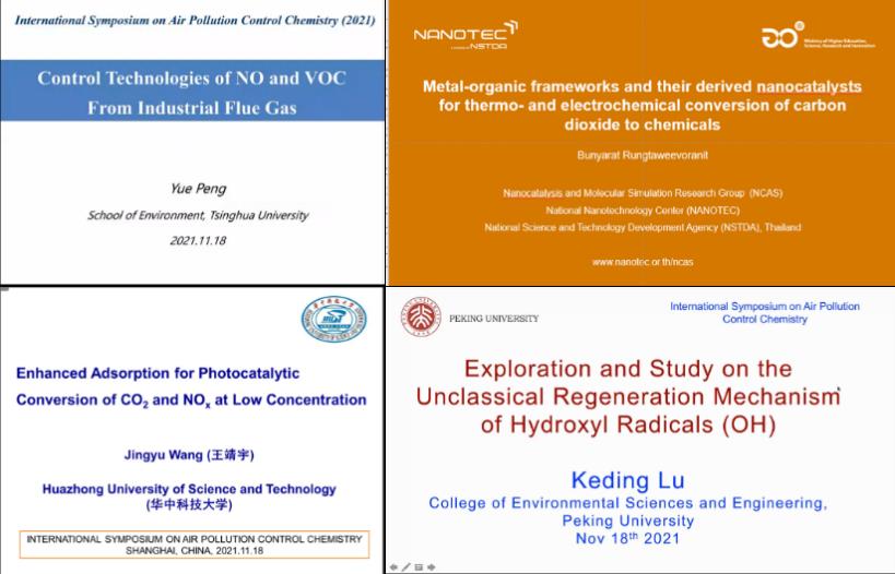 会议于2021年11月18日上午开幕,张登松研究员主持并致欢迎辞。在会议邀请报告中,来自澳大利亚昆士兰大学的Wang Lianzhou教授、电子科技大学Dong Fan教授、华中科技大学Wang Jiangyu教授、上海师范大学Zhang Dieqing教授以及泰国国家科技发展署国家纳米技术中心的Bunyarat Rungtaweevoranit研究员分享了以光催化,光电催化以及电催化等手段实现温室气体转化,污染气体消除的最新研究成果;美国西北太平洋国家实验室的Gao Feng研究员、浙江大学Weng Xiaole教授以及清华大学Peng Yue副教授以及美国中佛罗里达大学Liu Fudong助理教授,报告了分子筛催化剂,金属氧化物催化剂在移动源及固定源尾气治理,含氯挥发性有机物治理方面的研究进展,并探讨了催化剂抗中毒的机制;北京大学Lu Keding教授、复旦大学Zhang Liwu教授以及中国科学院生态研究中心Chu Biwu研究员分享了气体污染物的生成机制以及污染气溶胶组分解析;日本北海道大学Gao Min助理教授、瑞典查尔姆斯理工大学Chen Lin博士以及Yao Dawei博士的报告从理论计算及有限元模拟层面出发,为小分子污染物的催化转化以及吸附提供了思路。与会师生在会议中针对大气污染的起源、污染的控制及污染协同治理等相关问题展开了热烈的探讨。