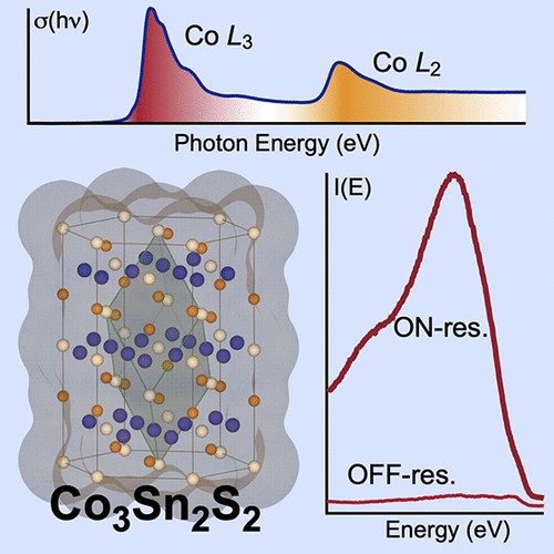 在本文的研究中,上大课题组采用上科大课题组提供的高质量Co3Sn2S2单晶样品,通过使用近边 X 射线吸收光谱 (NEXAFS) 和共振光电子能谱 (ResPES)研究了这种拓扑半金属晶体的电子结构。本工作的研究结果确定了Co3Sn2S2费米能级附近元素和轨道特定电子态。这一成果对于全面描述该材料的电子结构具有重要意义,对该材料在表面催化、凝聚态物理等交叉学科和技术领域的未来应用提供了微观机理方面的支持。