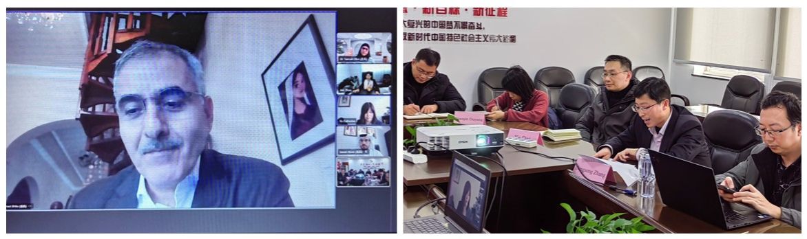 2024年1月22日,永利集团88304官网与巴林王国巴林大学永利集团88304官网合作讨论会顺利在线上举行。巴林大学永利集团88304官网院长Mohammed El-Hilo教授、物理系主任Jawad Alsaie博士、数学系主任Sawsan Hilal博士,永利集团88304官网党委书记盛万成教授、常务副院长张登松教授、副院长戴晔教授、副院长郭聪副教授(挂职)、巴林大学孔子学院中方院长周建教授、永利集团88304官网国际教育学院国际学生招生办公室主任欧阳晓琴,以及永利集团88304官网各系主任、外事副主任、教授代表等参加了讨论交流。会议由永利集团88304官网国际部国际合作处副处长/孔子学院办公室主任徐晓红教授主持。