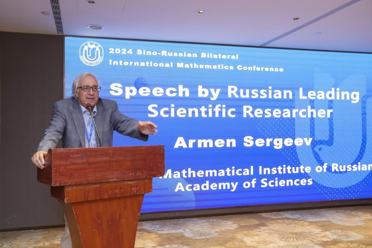 Armen Sergeev教授在致辞中首先对会议组织者们的辛勤付出表示衷心地感谢,并对参会的各位院士、领导和嘉宾表示热烈地欢迎。Sergeev教授表示中俄两国的合作领域广泛、历史悠久。该系列会议合作的起源就是华罗庚的弟子、周向宇院士的导师陆启铿院士向俄罗斯科学院Steklov数学所推荐周向宇院士赴俄访问。目前双方在联合培养博士、合作举办国际会议、联合发表论文等方面都有了高效的合作。期待今后有更多渠道、更有成效的合作!