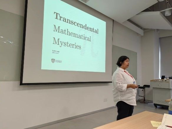 访问期间,Joshi教授在开展合作研究的同时,还参加了“椭圆可积系统及其相关问题高级研讨班”,并作系列讲座。此外,9月26日她还为本科生作了题为“超越数学奥秘”的公众科普报告,介绍了超越数和超越函数(transcendental functions)以及后者在当今数学研究中的核心地位。