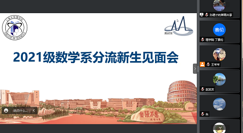 6月26日上午,永利集团88304官网数学系于线上举行2021级数学系分流新生见面会,数学系系主任朱佩成、永利集团88304官网党委副书记、纪委书记刘见礼、数学系副主任赵发友、徐姿、孙建才、21级数学系辅导员李倩、系教务秘书许万美、21级数学班导师姚锋平、张德凯等人出席会议。数学系2020级导生代表和2021级全体分流新生参加了会议,会议由数学系党总支副书记王岑岑主持。