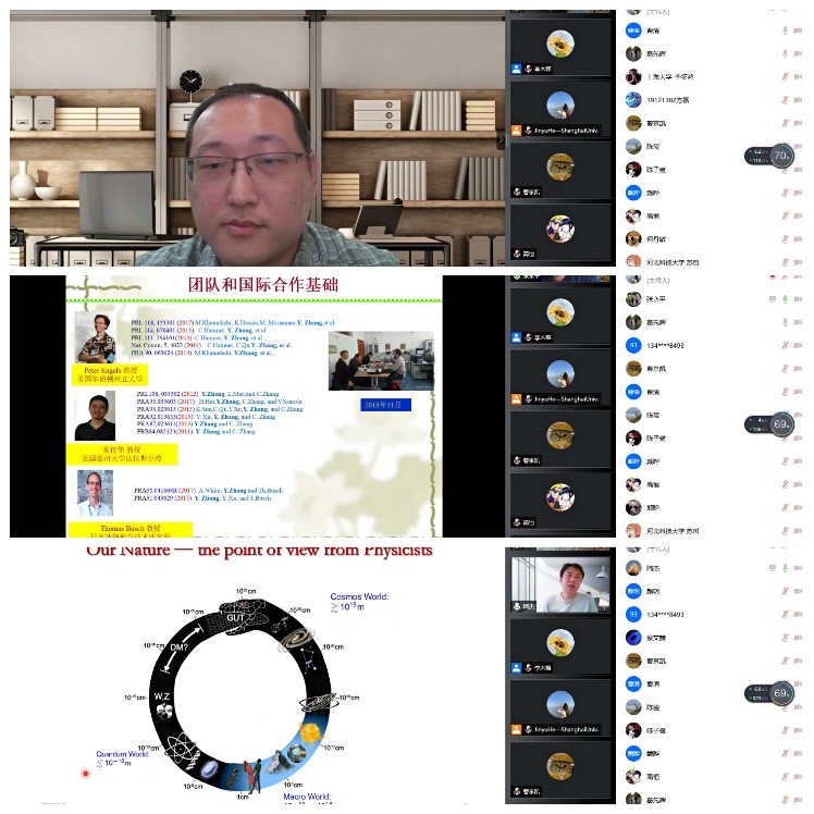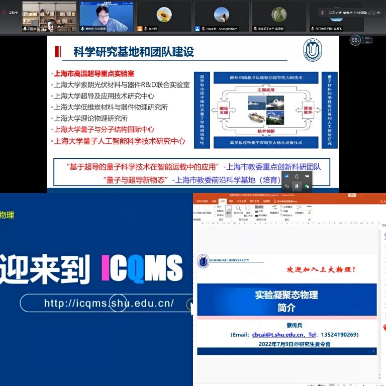 本次宣讲以理论物理、光学、无线电物理、凝聚态物理四个二级学科方向为基础,按模块进行宣讲,每个模块包括二级方向发展整体情况介绍与主题宣讲。9号下午,李征鸿教授对光学与无线电物理两个二级方向作了整体情况介绍,接下来光学方向的曹清教授、马国宏教授、戴晔教授进行了专题宣讲,无线电方向的申明教授、张永平教授、陈玺教授进行了学术报告。随后,敖平教授进行了主题宣讲,陆杰教授对理论物理方向进行了学科介绍。参加线上夏令营的师生都非常投入,发言踊跃,积极交流。10日上午由凝聚态方向的领军人物——蔡传兵教授、任伟教授分别对凝聚态的实验和理论计算两大方面进行了总览介绍。随后邓振炎教授、龚永勇教授、尹鑫茂教授、刘俊杰老师、郭盼博士、高恒博士、李永乐副教授对凝聚态方向内的研究内容做了进一步详细介绍,为在座的学生答疑解惑,分享传授经验。在师生互动交流环节中,教授与营员们面对面接触,大家一起讨论问题。老师的风趣和亲切让大家放下了顾虑,活动现场异常热烈。