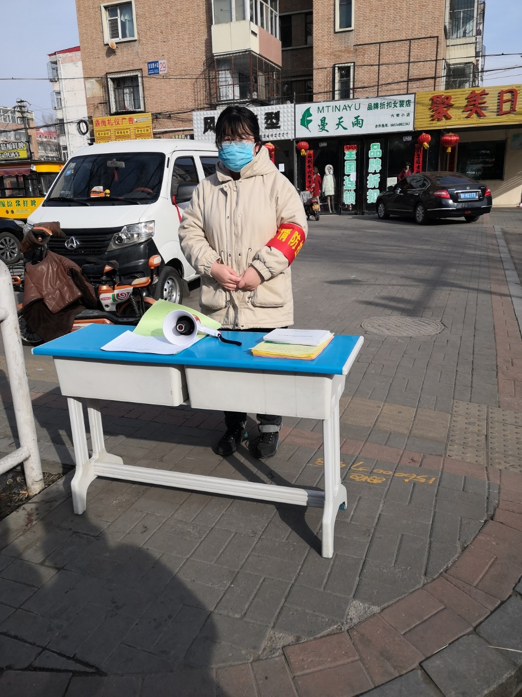 疫情伊始,办事处把她安排到了一线,刚开始做一些简单的工作,就在朔州北城片区大街小巷粘贴宣传广告纸,等做完这一切就开始布置疫情防控点,刚开始几天因为志愿者人手不够隔几天就需要换一个地点,而且正好遇上朔州零下二十几度的天气,风特别大而且特别冷,有时一天的志愿活动结束后,走路脚都没有知觉,但是她还是坚持每天对领导安排管理的小区进出人口,车辆进行登记并且消毒。前后差不多两个月的时间,她都一直坚持在抗疫的第一线,从没喊苦喊累,同事们都说她不怕困难、勇敢无畏,刷新了她们对当代大学生的认知,也改变了对95后的看法。