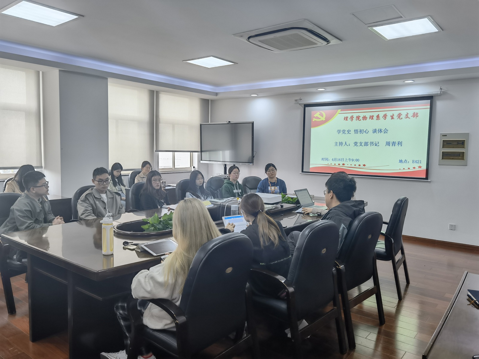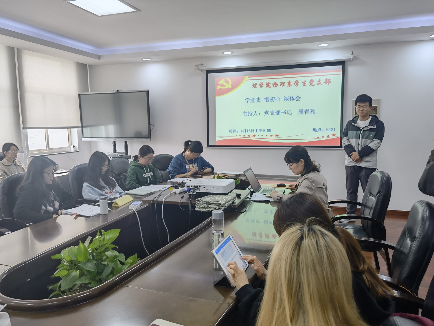 4月16日,永利集团88304官网物理系学生党支部召开“学党史,悟初心,谈体会”专题组织生活,支部全体党员到会参加。