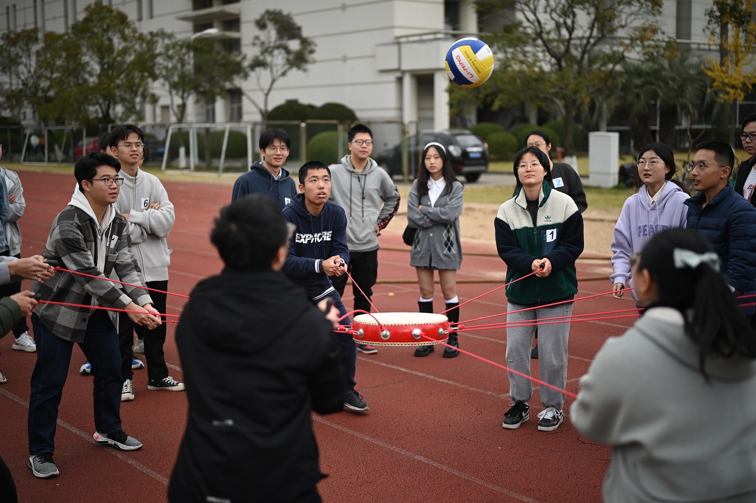 与传统运动会相比,趣味运动会将竞技与娱乐结合,着重鼓励学生团队参与,充分发挥团队合作精神,设置了如“呼啦圈接力”、“鼓面击球”和“拔河比赛”等一系列趣味性和协作性于一体的比赛项目。