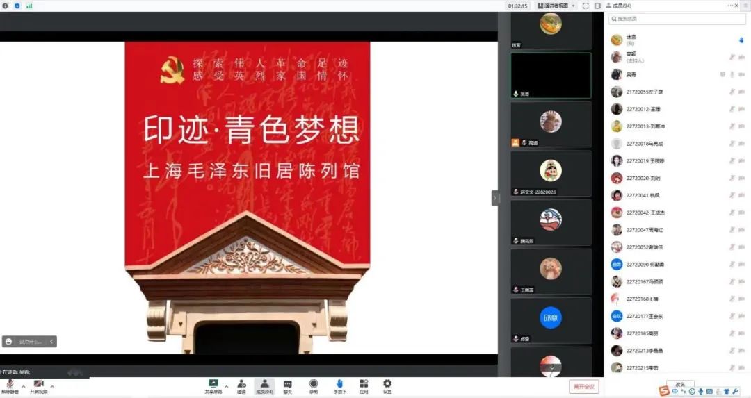 作为首批全国党建工作标杆院系,永利集团88304官网于10月21日上午11时在腾讯会议上开展题为“印记-青色梦想 ”的标杆共建讲座,邀请了上海市静安区文物史料馆开放管理部主任兼上海毛泽东旧居陈列馆主管吴青主讲,旨在向广大青年介绍上海毛泽东旧居陈列馆物件背后的故事。本次讲座由永利集团88304官网辅导员魏宛辰主持,永利集团88304官网师生百余人参加了本次讲座。