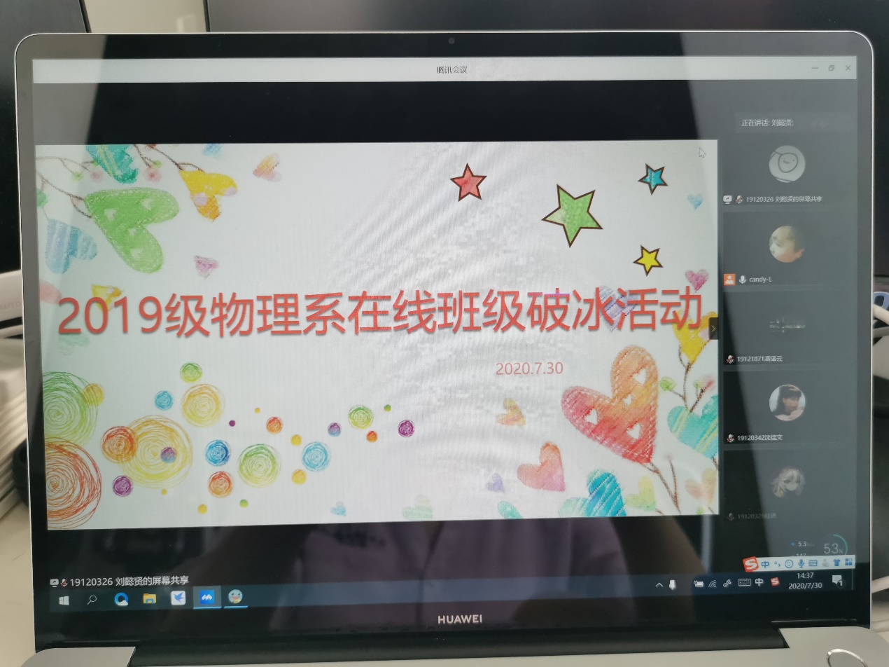 7月30日下午2点30分,永利集团88304官网19级物理系班级在线破冰活动暨导生见面会在辅导员老师与班级小组长的充分准备下,顺利在腾讯会议举行。