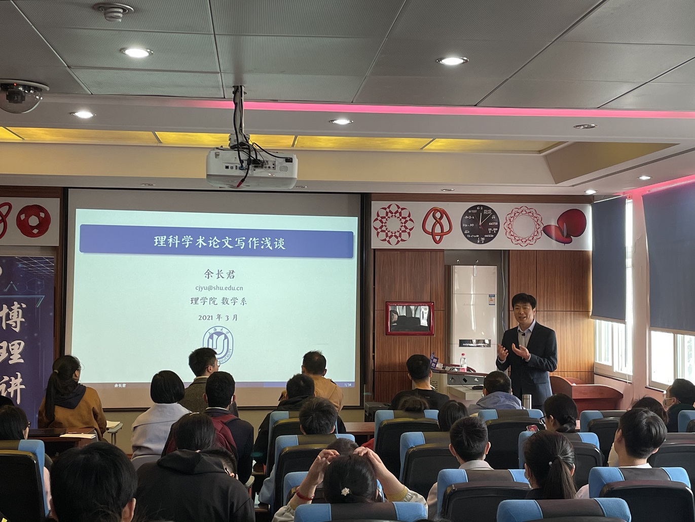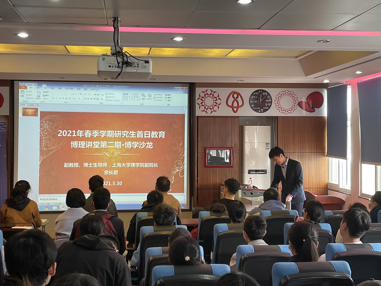 为拓宽学术视野,进一步提高学生科研写作能力,营造良好学风氛围,3月30日上午10点,永利集团88304官网在宝山校区G507举办2021年春季学期研究生首日教育暨博理讲堂第二期·博学沙龙。永利集团88304官网副院长余长君主讲题为“如何写好一篇高质量学术论文”的专题讲座,本次讲座由永利集团88304官网辅导员郭晓光主持。百余名永利集团88304官网学生参加了本次讲座,G507座无虚席,临时加坐也难以满足需求,过道以及后排挤满了前来聆听讲座的莘莘学子,整场讲座持续约100分钟,数十名同学坚持全程站立听讲,会场充满着浓郁的学术氛围。
