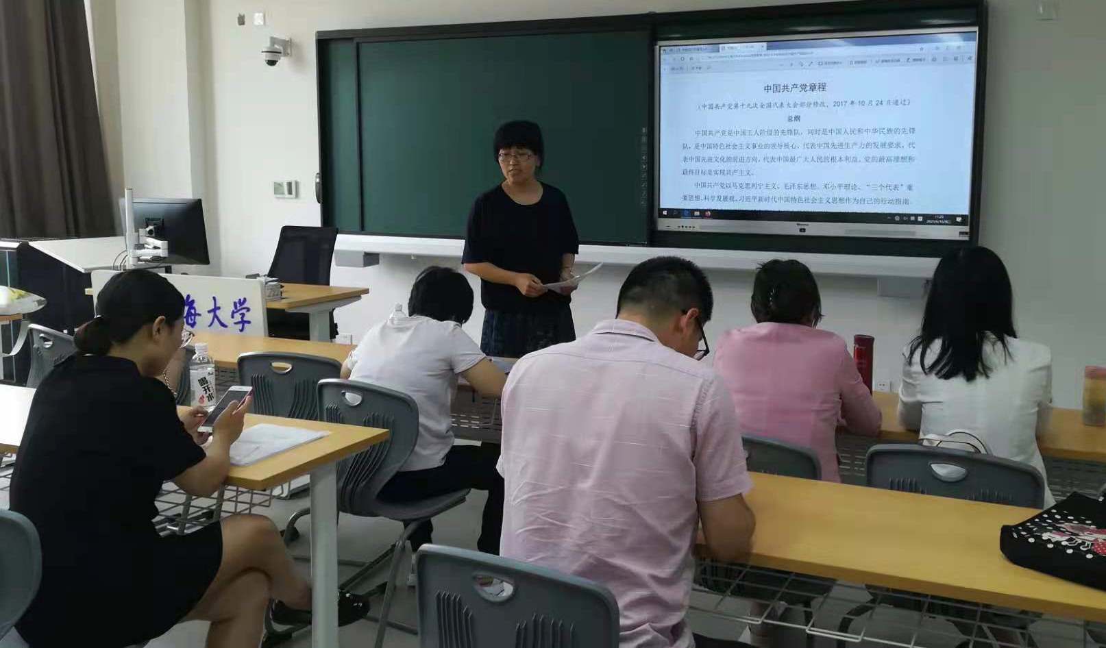 最后,大家进行了热烈的讨论。通过党章的学习,全体党员对党章有了更新更高的认识,对党的性质、理想目标、指导思想、基本要求、党员义务权益有了更深的理解,受到了一次深刻的党的政治理论和基础知识教育,从而也更加坚定了自己的革命理想信念和永葆共产党员先进性的崇高责任感;通过党史的学习,大家感悟责任担当,汲取到了奋进的力量,激励大家将始终保持蓬勃朝气、昂扬斗志,在推进全面依法治国的伟大实践中贡献自己的青春和力量;通过张桂梅事迹的学习,大家深受教育,张桂梅老师用一生坚守了立德树人的初心,践行了为党育人、为国育才的使命,大家一致认为:作为高校教师,我们要学习张桂梅老师的精神,不仅要视学生为亲人,帮助学生成长成才,还要为学生系好人生第一粒扣子,教育引导学生树立远大理想,立志报效祖国。毫不动摇地坚持中国共产党的领导,积极履行参政议政职能、立足本职、开拓创新,始终不渝地走中国特色社会主义道路,为实现中华民族的伟大复兴贡献自己的力量。