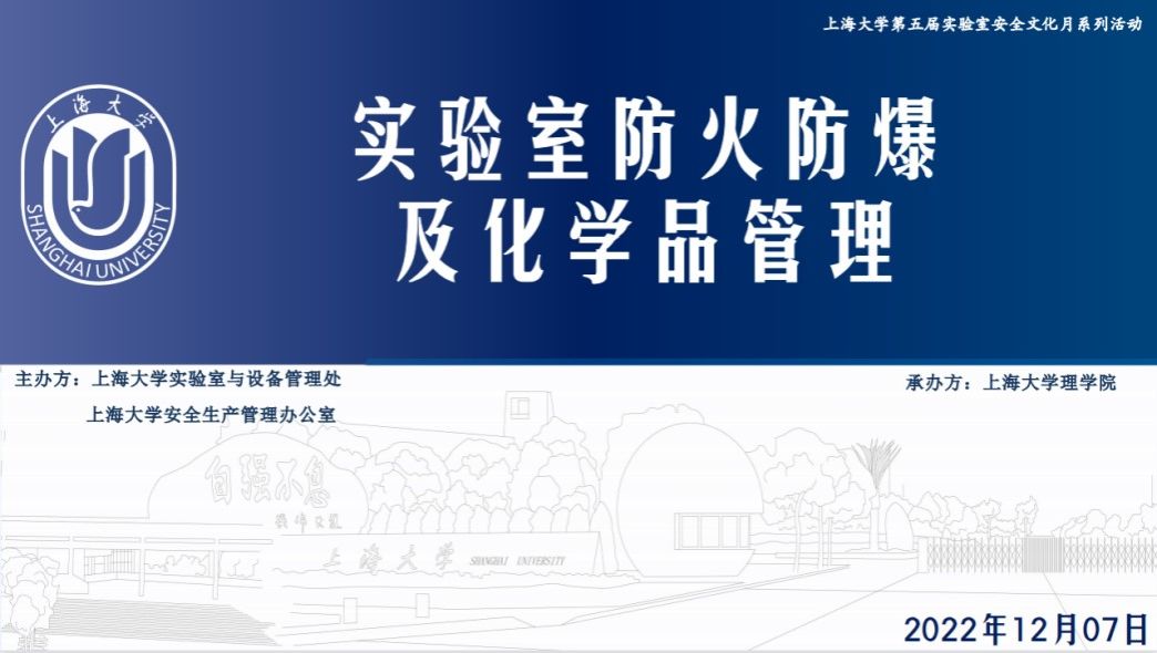 2022年12月7日上午,由永利集团88304官网实验室与设备管理处、永利集团88304官网安全生产管理办公室主办,永利集团88304官网承办的实验室防火防爆及化学品管理讲座顺利举行。讲座邀请到华东理工大学资深的一级安全评价师、上海市应急管理局专家库核心专家陈继章老师。讲座由永利集团88304官网副院长袁帅主持,采取线上+线下方式举行。本次讲座是永利集团88304官网第五届实验室安全文化月系列活动之一。实验室与设备管理处、兄弟院系和永利集团88304官网的老师和同学参加了本次讲座。