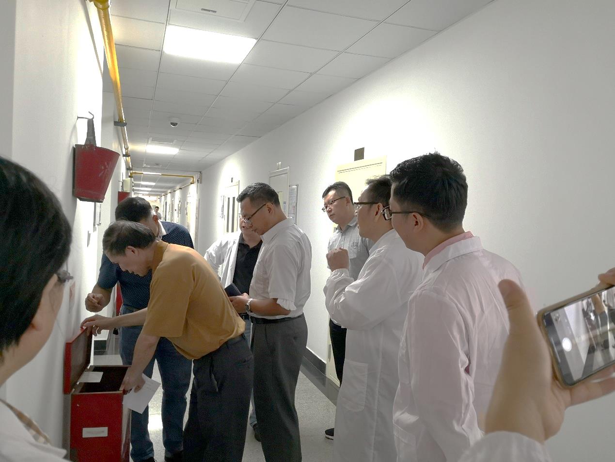 接着,督查组检查了HA楼的灭火器、消防栓等消防设施的配置和定期检查记录,对整个大楼的燃气管道、通风设施的布设进行了详细的了解,对大修后崭新的化学楼消防设施的布控给予了肯定。