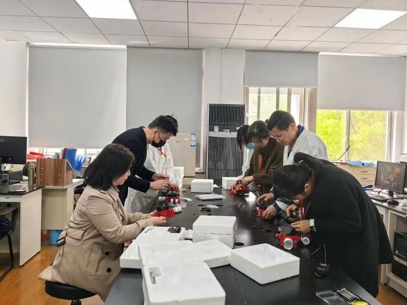 为提高实验室安全保障,提升消防安全管理水平,4月12日上午,化学实验中心党支部根据实验室安全管理规定,对需要安装氧气浓度报警器的教学实验室进行了梳理,对新购置氧气浓度报警器的安装工作进行了集体探讨。由于此批氧气浓度报警器属于升级版,性能全面,灵敏度高,因此组装过程也稍微有点复杂,涉及电源线的拆解和线路安装改造,需要花费一定的时间和精力去理解、学习并付诸实践。为了减轻老师们的工作负担,提高安装效率,化学实验中心党支部书记王玉芹老师组织大家在HA203a计算机房,一起学习,一起动手,集体开展氧气浓度报警器的安装调试工作,将“我为群众办实事”落实到具体行动中。