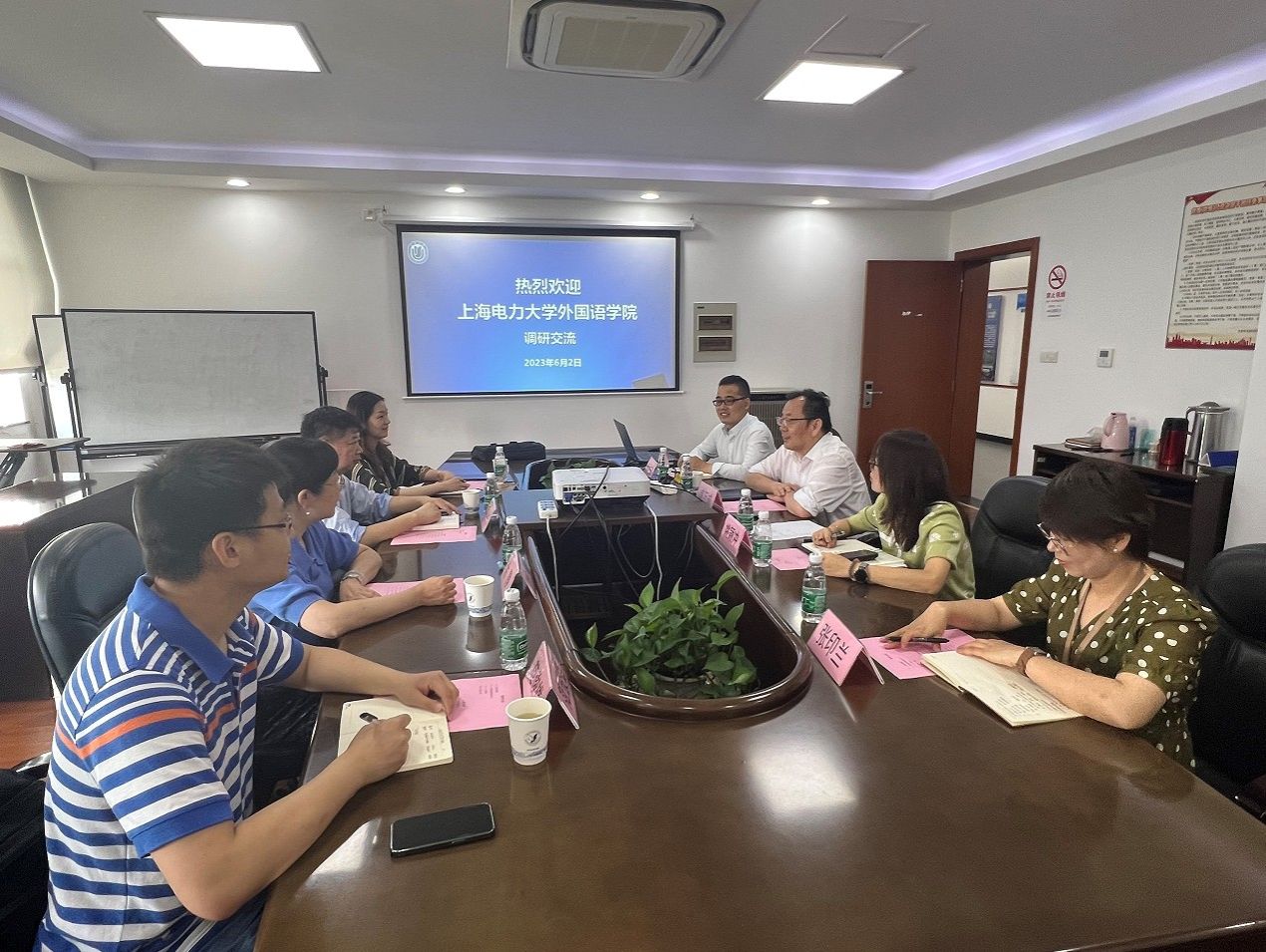6月2日上午,上海电力大学外国语学院党委书记余静、院长潘卫民一行来访永利集团88304官网开展调研交流。永利集团88304官网党委书记盛万成,党委副书记、纪委书记刘见礼,党委副书记、副院长姚颖冲等同志接待了来访人员。会议由盛万成同志主持。