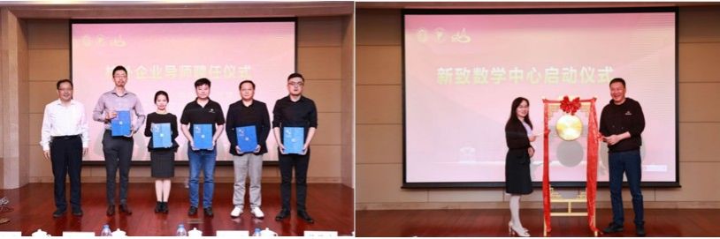 最后,新致软件股份有限公司董事长郭玮先生与数学系主任、新致数学中心主任张红莲一起敲响铜锣,举行新致数学中心启动仪式,祝愿新致数学中心蓬勃发展。郭玮董事长表示希望新致数学中心聚焦数学学科前沿问题,建设成为国际一流的数学研究中心。