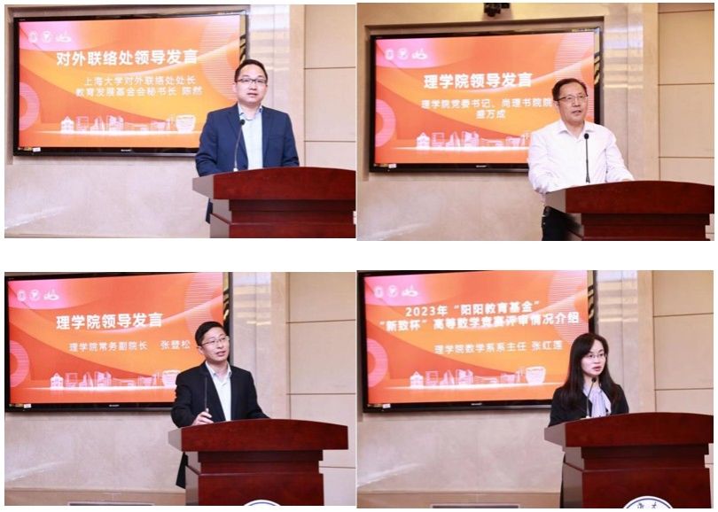 会议伊始,永利集团88304官网党委常委、副书记欧阳华和新致软件股份有限公司董事长郭玮分别致辞。欧阳华强调郭玮、徐海珍伉俪设立的永利集团88304官网“阳阳教育基金”已经帮助和激励了很多年轻人在数学领域自由探索,并取得了卓越的成绩。永利集团88304官网数学学科全球排名、科研基金项目、国家级人才、顶级期刊论文发表等方面都有了飞跃式的发展和零的突破,这与校友们的支持与关心是密切相关的。希望数学系的师生们心怀感恩、奋发图强,坚定科研报国、艰苦拼搏的决心,为永利集团88304官网数学学科发展争取更多、更大的突破!郭玮回顾了“阳阳教育基金”设立的初心,他表示看到永利集团88304官网、数学学科飞速发展,看到年轻人取得卓越的成绩他心里感到非常的高兴和欣慰。他强调与数学学科已经在探索开展全方位、深层次、重实效的深度合作,从“阳阳教育基金”开始,今年又有了“新致杯”高等数学竞赛,“新致数学中心”也正式启动,希望能够通过深度链接,积极服务国家战略,增强使命担当。