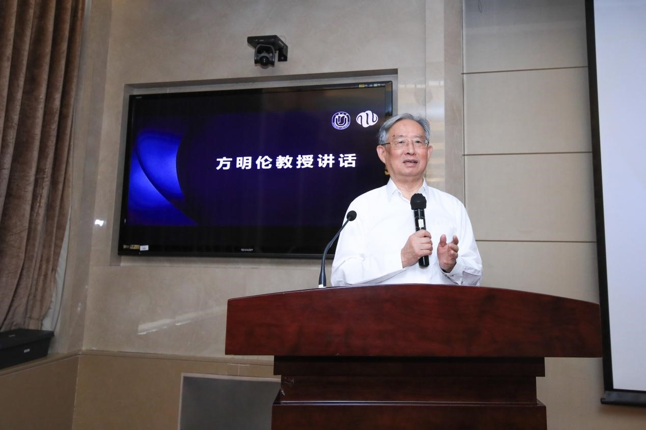 典礼最后,方明伦教授讲话。他从钱伟长校长一贯对数学与力学学科高度重视出发,介绍了数学的重要性。同时,他还表示自己深爱着永利集团88304官网,始终心系上大学子的成长,希望在座的老师和同学能够继续努力,扎根数学,学好数学,争取更多更好的科研成果,以满意的答卷来回馈设奖人的初心,进一步推动永利集团88304官网双一流建设,为我们国家数学学科的发展做出应有的贡献。