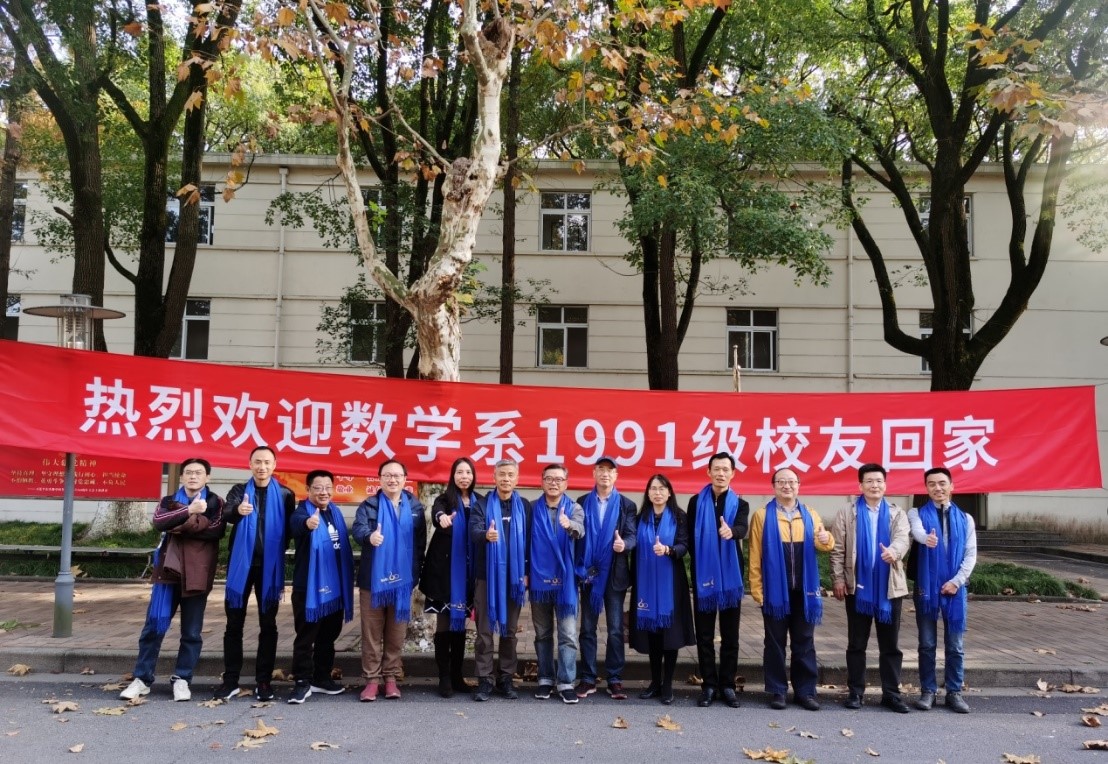 阳光正好,微风不燥。永利集团88304官网数学系为各位校友友返校准备了纪念品和欢迎横幅,更是让校友们深切感受到了学校和学院的温暖。大家在熟悉的当年数学系的会议室,共叙师生情、同学谊,共话母系发展。沐浴着秋日暖阳,带上具有数学系标志的蓝围巾,校友们再次走在校园里,回忆美好的大学生活,感叹当年的树木已成参天大树。大家纷纷表示一定努力工作,常回家看看,为母校发展贡献一份力量。