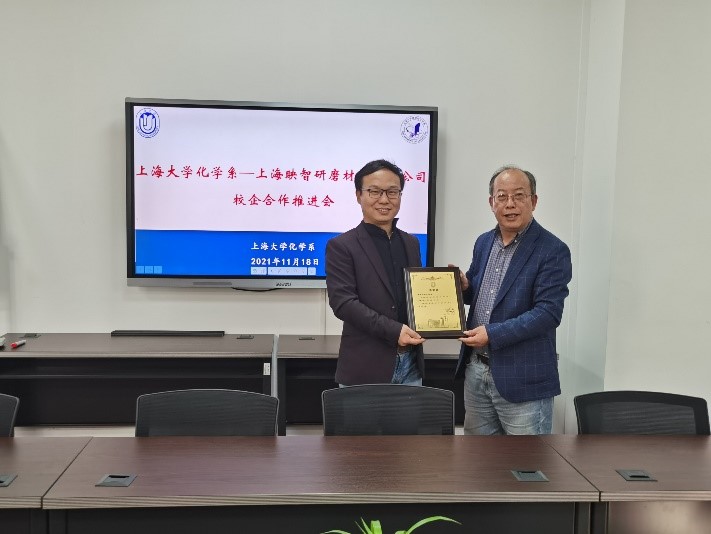总经理张泽芳受化学系邀请,曾多次来校讲学。为了表示感谢,化学系向他赠送了感谢状。本次交流,围绕建立联合实验室、学生实习基地、校友捐赠及毕业生就业等相关问题进一步深入推进,并就具体合作意向进行了部门及人员的对接。总经理张泽芳表示,作为上大毕业的学子,非常感谢母校的栽培,希望通过合作可以为母校的学生培养做出贡献。化学系系主任曹卫国教授肯定了张泽芳校友前期的工作,同时也指出,对于校友企业,化学系愿意给予更多的支持和帮助,希望通过合作不仅可以为学校的学生培养助力,也会尽力为校友企业提供技术合作和支持,实现双赢的目标。
