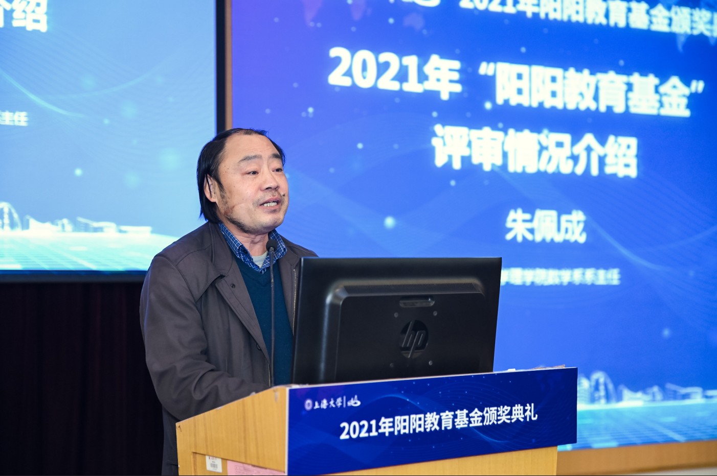 随后永利集团88304官网数学系系主任朱佩成教授介绍了此次2021年“阳阳教育基金”评审情况。本届共评选出“阳阳优秀青年教师奖”15名,“阳阳推免硕士新生奖”35名,“阳阳招考硕士新生优质生源奖”10名,“阳阳招考硕士新生成绩优异奖”3名,“阳阳优秀分流奖学金”10名,评审过程公开、公平、公正。