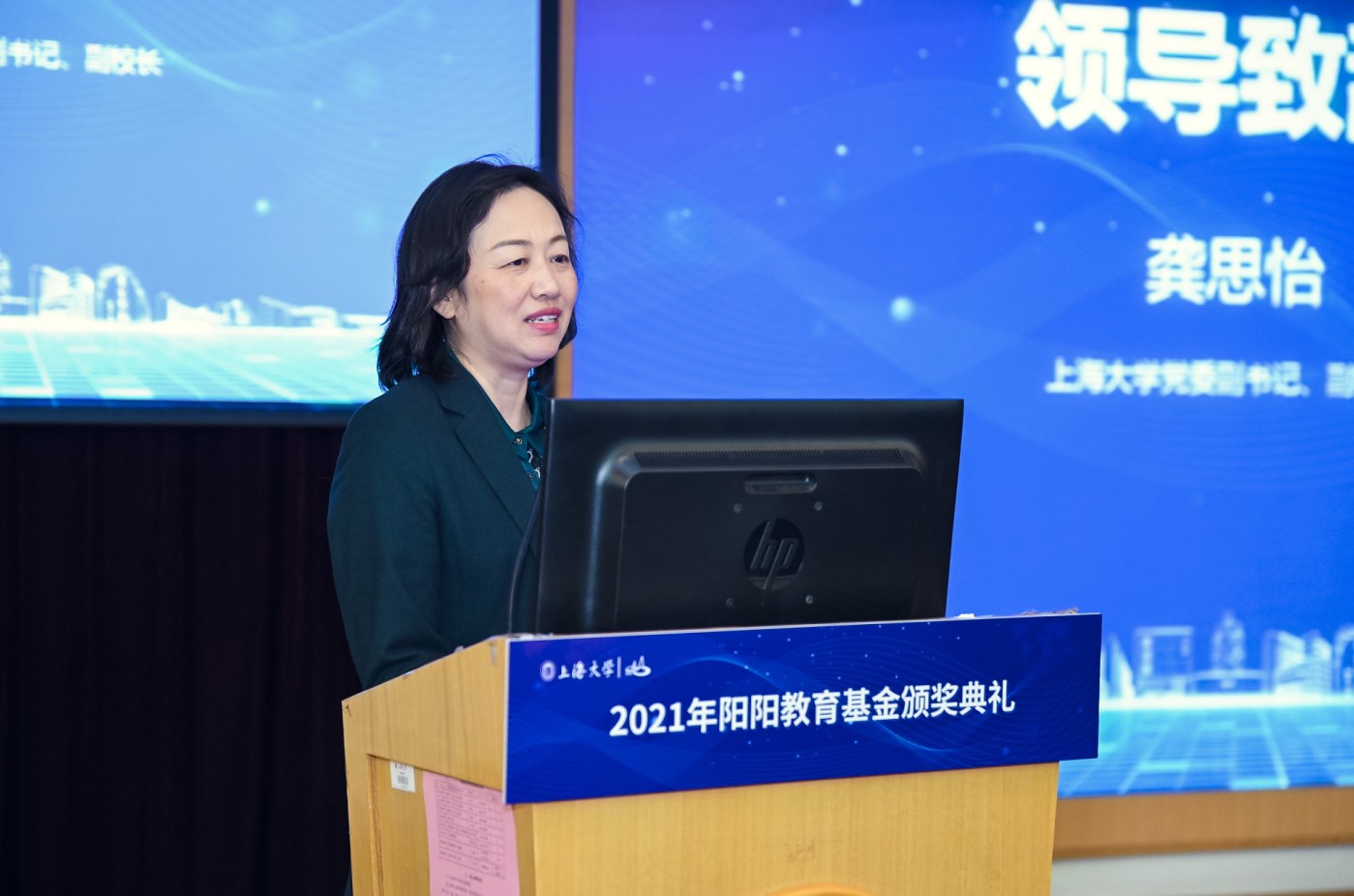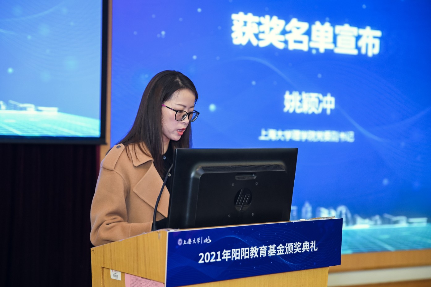 11 月 13 日上午,永利集团88304官网数学系2021年“阳阳教育基金”颁奖典礼在宝山校区 J 楼 202 报告厅成功举行。新致软件股份有限公司董事、数学系87级校友徐海珍女士,永利集团88304官网党委副书记、副校长龚思怡,永利集团88304官网对外联络处处长陈然,永利集团88304官网党委书记盛万成,永利集团88304官网党委副书记姚颖冲,永利集团88304官网副院长余长君,永利集团88304官网副院长戴晔,永利集团88304官网数学系主任朱佩成,原校友理事直属机关党委书记、巡察办正处级巡察员、数学系系友陈志宏老师,数学系班子成员及获奖师生共同出席了本次颁奖典礼,仪式由永利集团88304官网党委副书记刘见礼主持。