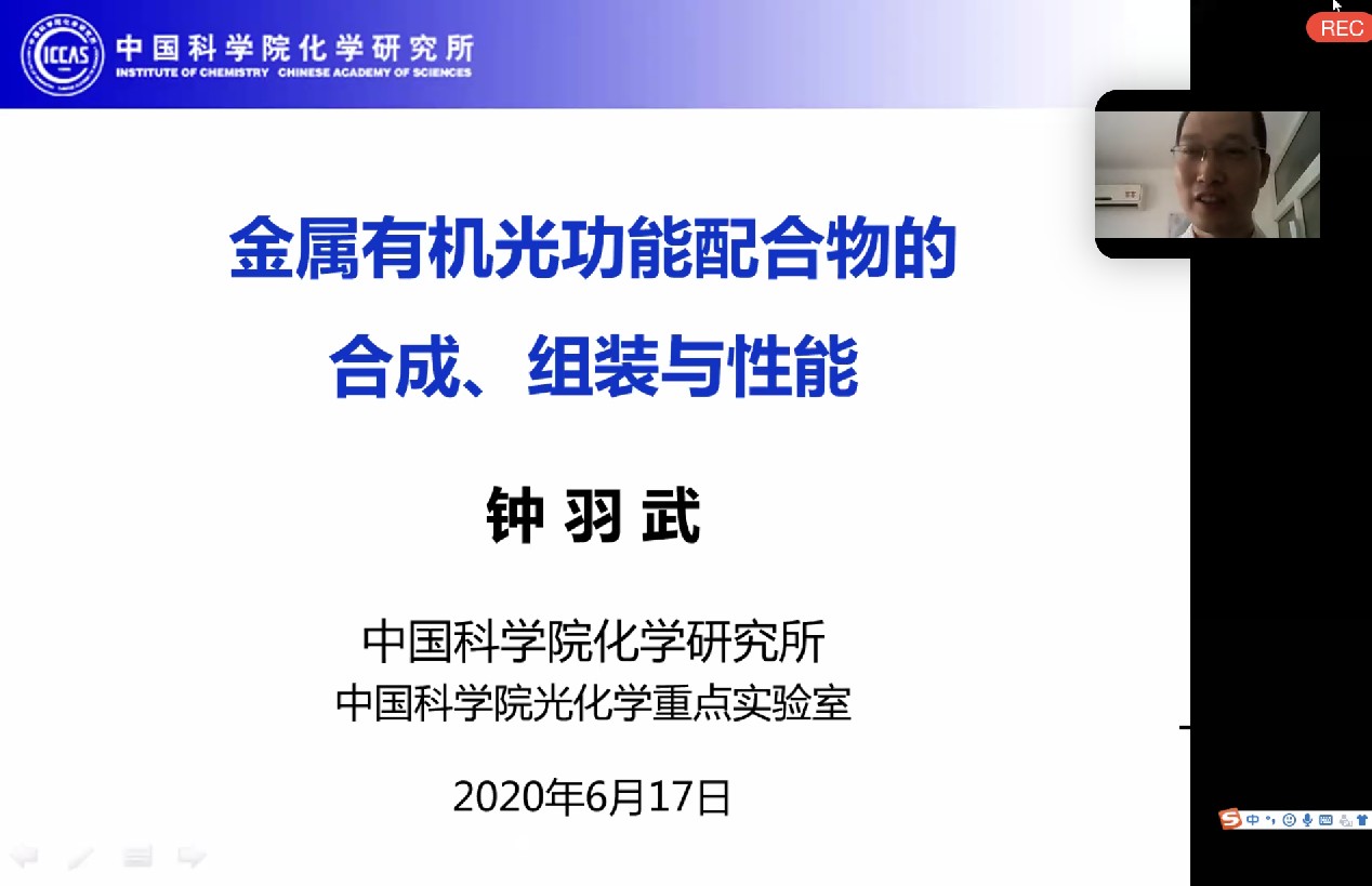 6月17日下午,2020年第六届“永利集团88304官网国秀奖学金”颁奖仪式暨学术报告,在新校区Ha102会议室及Zoom视频中隆重举行。仪式由化学系主任曹卫国教授主持,中国科学院化学研究所钟羽武研究员、永利集团88304官网党委书记盛万成、副院长徐甲强、党委副书记姚颖冲、化学系党总支书记陈雅丽、副主任丁益民、邢菲菲、李健、赵宏滨、党总支副书记胡研、工会主席宋力平。研究生导师、班导师、学生代表等师生200多人参加了线下线上的活动。获奖导师方建慧、许斌、程知萱、孙丽宁等参加了现场颁奖仪式。